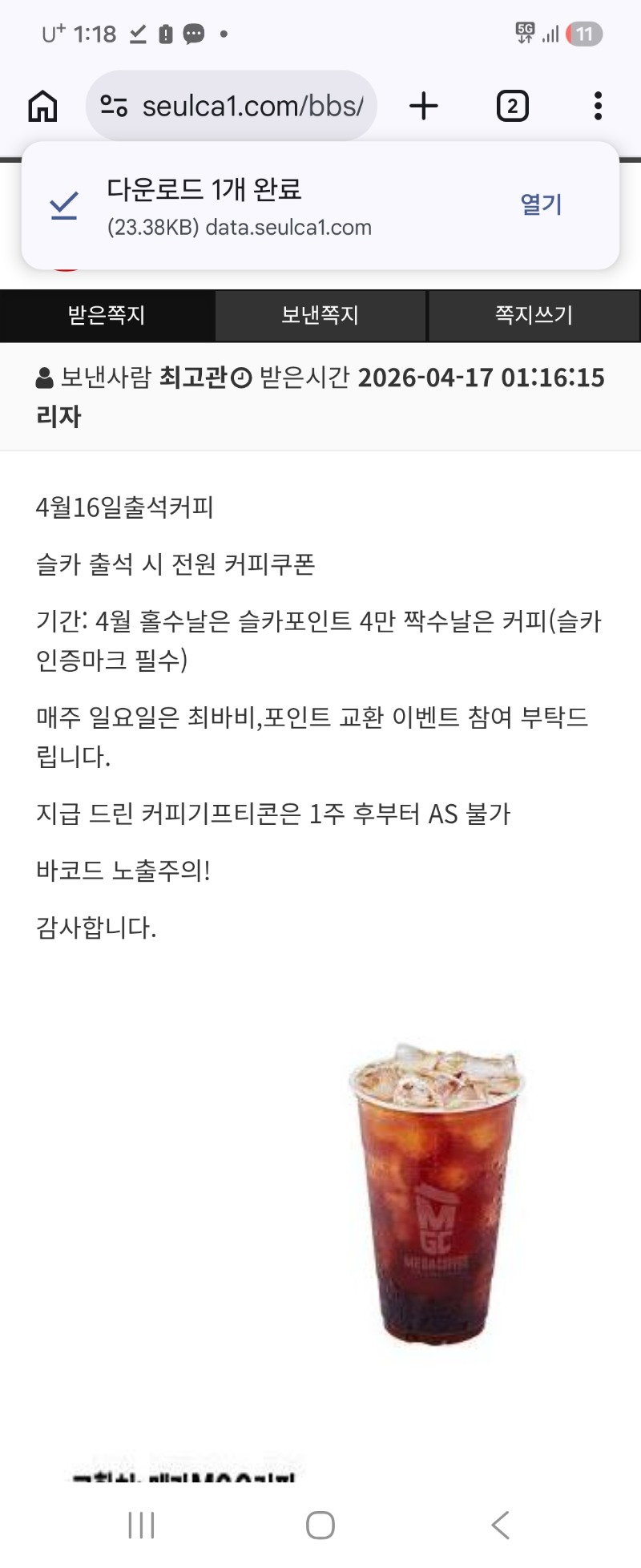 슬카 출석 커피 감사합니다^^ 청이아빠 1 0 0 01:18:44 *기프티콘 바코드 노출 주의* <- 감사합니다 0 0 https://seulca1.com/bbs/board.php?bo_table=free&wr_id=3799347 Author 1 0 Lv.15 청이아빠 15 40,741,945 (53%) 청이아빠님 보유 포인트 : P 1,605,011 +7 04.17 오라메 1472배 +1 04.17 슬카 출석 커피 감사합니다^^ 04.17 출석합니다 +8 04.16 포인트 더블업 ㅅㅅㅅ +3 04.16 다들 맛저하세요