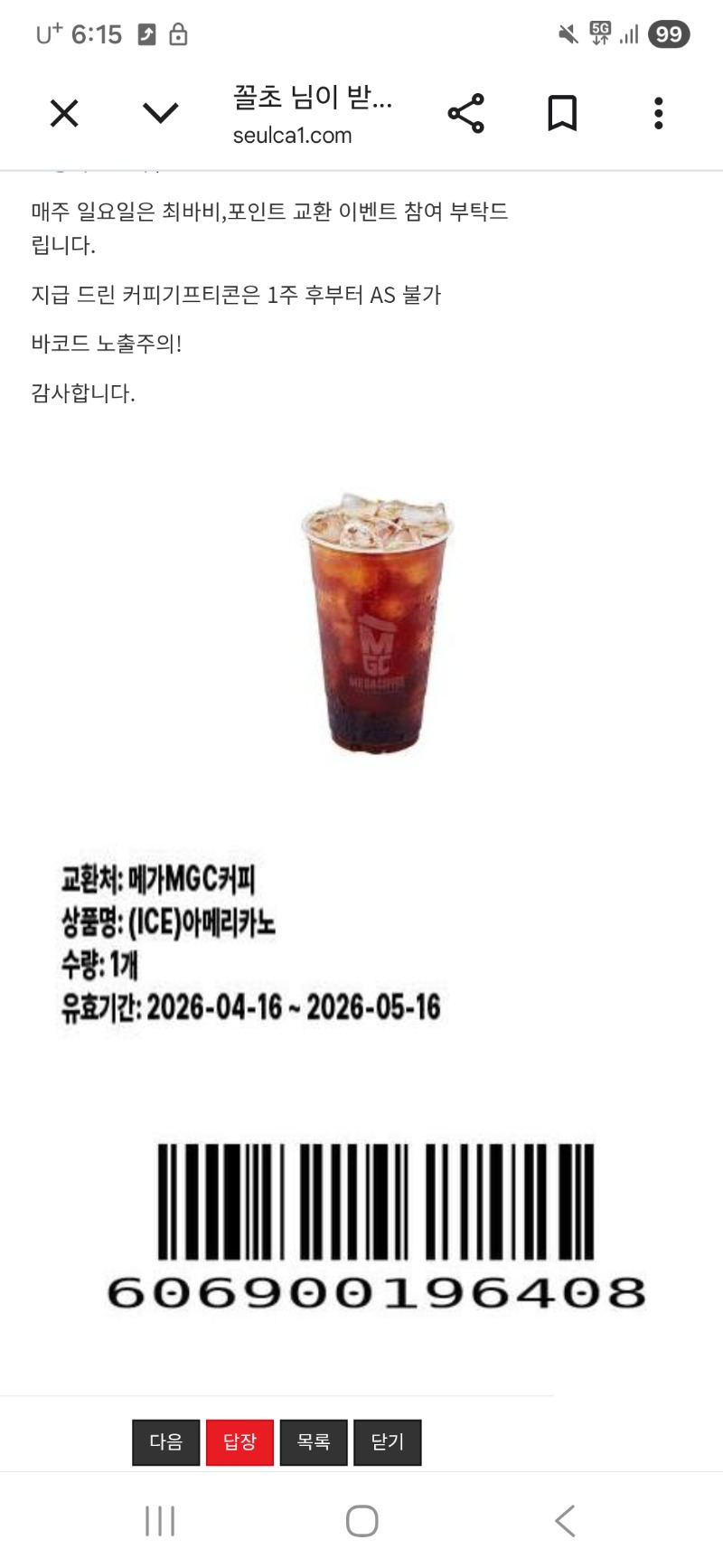 커피 감사합니다 꼴초 7 0 1 06:16:59 *기프티콘 바코드 노출 주의* <- 0 1 https://seulca1.com/bbs/board.php?bo_table=free&wr_id=3799707 Author 1 0 Lv.13 꼴초 13 21,742,991 (74%) 꼴초님 보유 포인트 : P 1,908,384 +4 04.17 굿모닝이네요 +7 04.17 커피 감사합니다 +4 04.16 일복꽝 꽝포인트도 짜다짜 ㅋㅋ +11 04.16 공주천 120 +14 04.16 올천 330