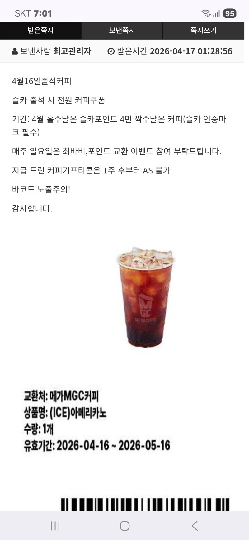 출석커피 스톤콜드 1 0 0 07:02:32 *기프티콘 바코드 노출 주의* <- 잘마실께요 0 0 https://seulca1.com/bbs/board.php?bo_table=free&wr_id=3799825 Author 4 1 Lv.11 스톤콜드 11 12,559,222 (85%) 스톤콜드님 보유 포인트 : P 51,683 +1 04.17 출석커피 +1 04.17 간만에쌍복 꽝 04.16 포교 04.16 형난 +4 04.16 깡치기힘드네