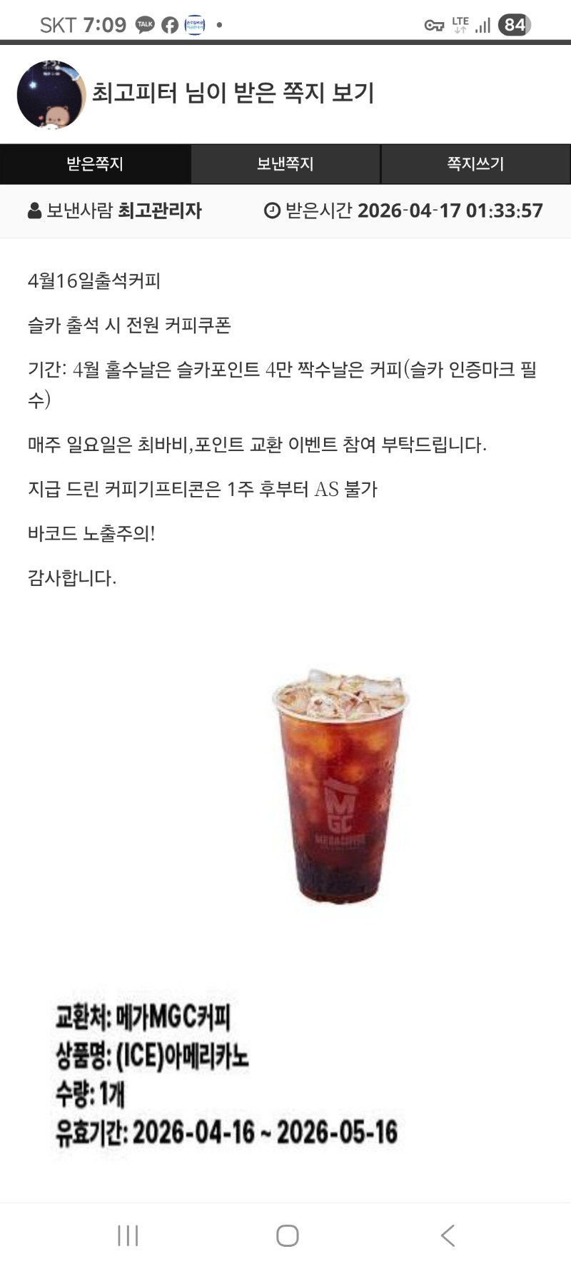 커피감사용 최고피터 1 0 0 07:09:47 *기프티콘 바코드 노출 주의* <- 잘마실게용 0 0 https://seulca1.com/bbs/board.php?bo_table=free&wr_id=3799845 Author 3 0 Lv.14 최고피터 14 29,740,569 (96%) 최고피터님 보유 포인트 : P 2,183,812 +7 04.17 올천447배 +5 04.17 스피드바카라망 +1 04.17 커피감사용 +2 04.16 돈이님감사 +12 04.16 올천306배
