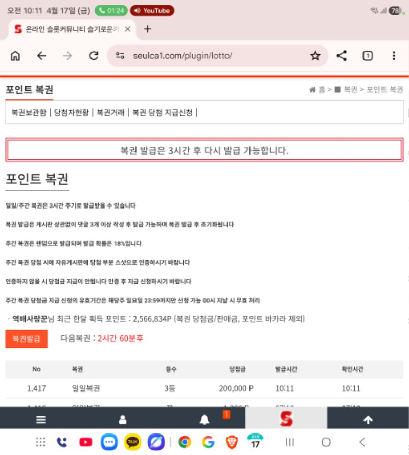 오예~~~슬포 뎅나자마자 일복이 3등 당첨 ㅋㅋ
