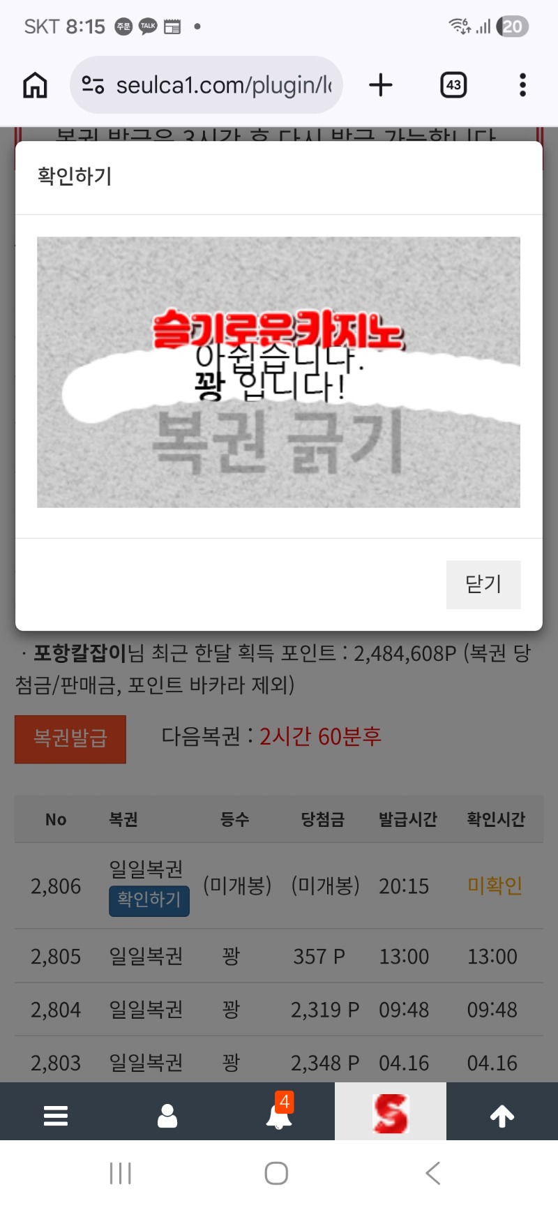 포교쫌 해보자 포항칼잡이 0 0 0 20:15:47 *기프티콘 바코드 노출 주의* <- 0 0 https://seulca1.com/bbs/board.php?bo_table=free&wr_id=3802377 Author 3 1 Lv.12 포항칼잡이 12 16,252,650 (65%) 포항칼잡이님 보유 포인트 : P 2,621,988 +16 04.17 슈슈434배 숙제 04.17 포교쫌 해보자 +2 04.17 포교한번해보자 ㅡ,ㅡ +18 04.17 좀스 325배 숙제 +2 04.17 나도 출근완.
