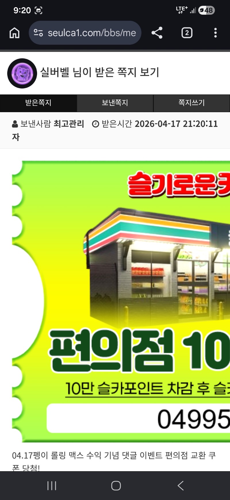 댓글 이벤트 편의점쿠폰~~~ 실버벨 4 0 0 21:22:30 *기프티콘 바코드 노출 주의* <- 감사드려요 0 0 https://seulca1.com/bbs/board.php?bo_table=free&wr_id=3802592 Author 8 6 Lv.19 실버벨 19 174,568,572 (0%) 실버벨님 보유 포인트 : P 1,364,247 +2 04.17 빠릅니다 빨라요~~~ +1 04.17 [비밀글] 편의점 교환용 +4 04.17 댓글 이벤트 편의점쿠폰~~~ +6 04.17 상 주세요~~~~~~~~ +4 04.17 오랜만이군....