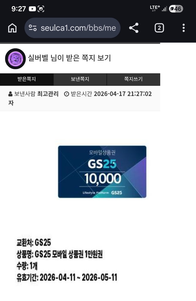 빠릅니다 빨라요~~~ 실버벨 2 0 0 21:28:54 *기프티콘 바코드 노출 주의* <- 0 0 https://seulca1.com/bbs/board.php?bo_table=free&wr_id=3802630 Author 8 6 Lv.19 실버벨 19 174,568,972 (0%) 실버벨님 보유 포인트 : P 1,364,647 +2 04.17 빠릅니다 빨라요~~~ +1 04.17 [비밀글] 편의점 교환용 +4 04.17 댓글 이벤트 편의점쿠폰~~~ +6 04.17 상 주세요~~~~~~~~ +4 04.17 오랜만이군....
