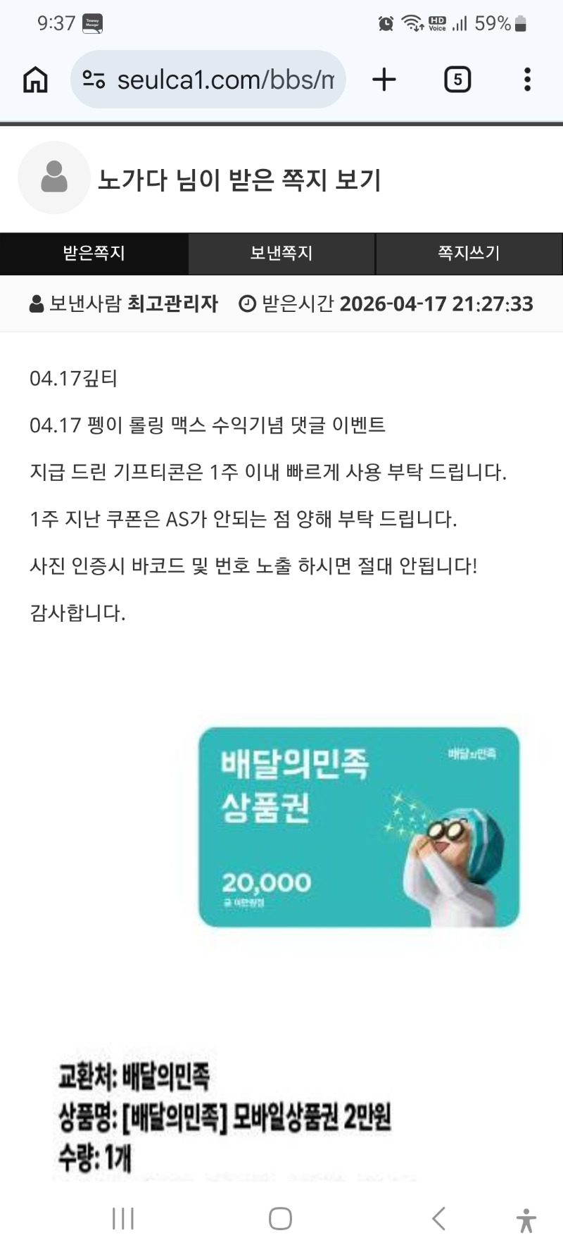 펭그루 맥스배민쿠 노가다 4 0 0 21:38:35 *기프티콘 바코드 노출 주의* <- 땡큐베리감사 0 0 https://seulca1.com/bbs/board.php?bo_table=free&wr_id=3802717 Author 0 0 Lv.11 노가다 11 10,480,299 (16%) 노가다님 보유 포인트 : P 5,621 +4 04.17 펭그루 맥스배민쿠 +5 04.16 양이 깡포감하르 +2 04.16 이젠 냉면,막국수가 땡기는 날이 +2 04.16 슬카라 소액으로 살금살금 04.16 출석