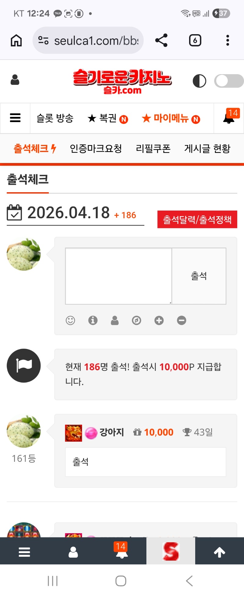 출책완료 ~~~ 강아지 1 0 0 00:25:08 *기프티콘 바코드 노출 주의* <- 0 0 https://seulca1.com/bbs/board.php?bo_table=free&wr_id=3803424 Author 0 0 Lv.14 강아지 14 29,789,500 (96%) 강아지님 보유 포인트 : P 6,695,563 +1 04.18 출책완료 ~~~ +10 04.17 펭이 추겜 성공 수익 배민쿱 ~~잘쓸께요 ♡♡♡ +7 04.17 물개 추겜 당첨 오늘도 수익 못봤넹 ㅠㅠ 04.17 수익왕 신청 완료 ^^ +7 04.17 일복이 10드미라도 당첨 감사합니다 ^^^