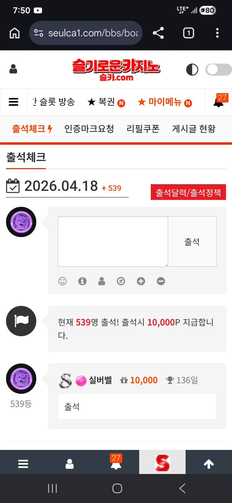 출석~~~ 실버벨 1 0 0 07:51:01 *기프티콘 바코드 노출 주의* <- 오늘하루도 화이팅 입니다 ㅎ 0 0 https://seulca1.com/bbs/board.php?bo_table=free&wr_id=3804155 Author 8 6 Lv.19 실버벨 19 174,678,347 (0%) 실버벨님 보유 포인트 : P 2,227,753 +1 04.18 출석~~~ +2 04.18 좋은 아침입니다~~~~ +2 04.17 빠릅니다 빨라요~~~ +1 04.17 [비밀글] 편의점 교환용 +4 04.17 댓글 이벤트 편의점쿠폰~~~