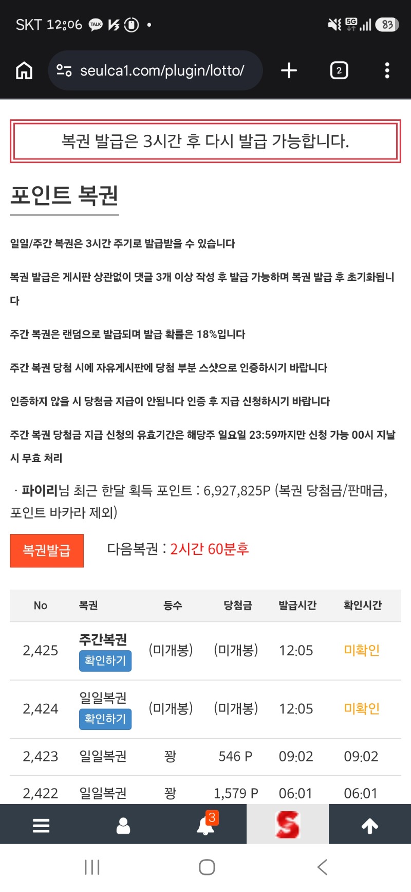 이번주 2번째쌍복은 꽝 파이리 1 0 0 12:06:51 *기프티콘 바코드 노출 주의* <- 0 0 https://seulca1.com/bbs/board.php?bo_table=free&wr_id=3804932 Author 3 1 Lv.13 파이리 13 20,226,271 (44%) 파이리님 보유 포인트 : P 2,000 +1 04.18 ㅡ.ㅡ....아어 ㅋ3대2로 다이 +2 04.18 포교하고싶다... 작년11월25일 마지막이구나.. +5 04.18 아씨..ㅠ 11시에 이모찾았어야하는데 +1 04.18 이번주 2번째쌍복은 꽝 +9 04.18 오랜만에 유튭 노래듣다가 ㅋㅋ 추억돋는..