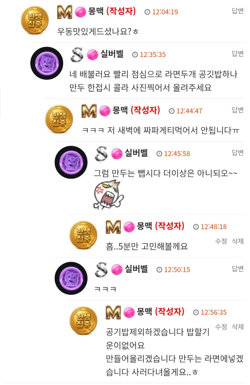 실버벨형님의 간곡한요청에 의한 점메추feat.여친과 싸움..