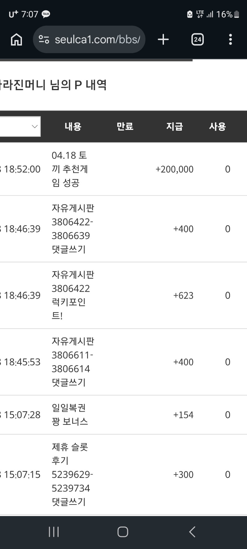 토끼 추천겜 당촘~ 사라진머니 3 0 0 19:08:00 *기프티콘 바코드 노출 주의* <- 0 0 https://seulca1.com/bbs/board.php?bo_table=free&wr_id=3806859 Author 0 0 Lv.7 사라진머니 7 2,009,900 (0%) 사라진머니님 보유 포인트 : P 179,603 +7 04.18 레벨업~~~ +3 04.18 토끼 추천겜 당촘~ +2 04.18 아유....힘이든다 ㅠ +9 04.17 또 또 일복이 10등 2연당첨! +6 04.14 주복10등당첨감사합니다