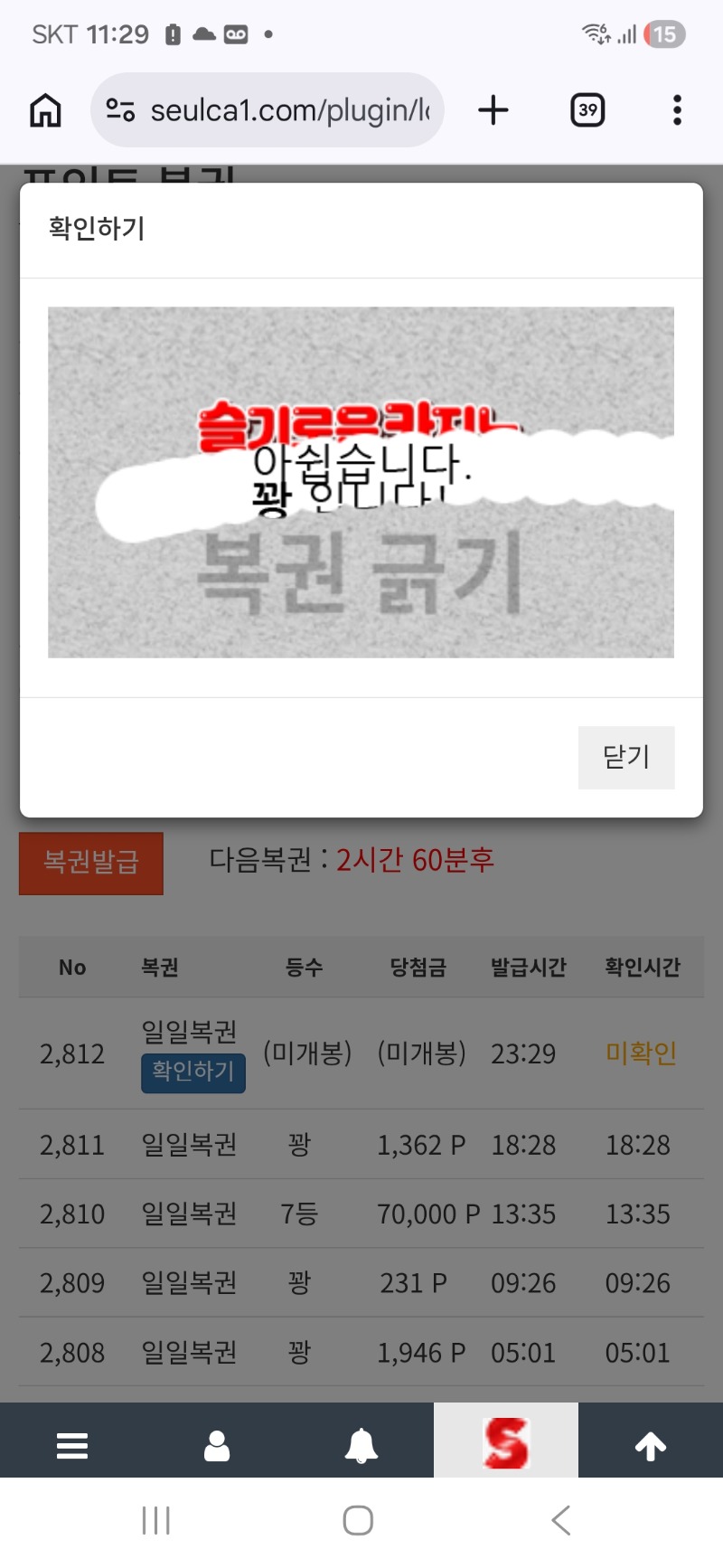 오늘하루 수고하셨습니다 꽝 ㅋ 포항칼잡이 1 0 0 04.18 23:30 *기프티콘 바코드 노출 주의* <- 0 0 https://seulca1.com/bbs/board.php?bo_table=free&wr_id=3807732 Author 3 1 Lv.12 포항칼잡이 12 16,286,949 (65%) 포항칼잡이님 보유 포인트 : P 2,726,187 +24 04.18 뱀피 3222배 숙제 +1 04.18 오늘하루 수고하셨습니다 꽝 ㅋ +58 04.18 슈가1275배 숙제 +5 04.18 7등 을마많이고. ㅠ +2 04.18 모닝꽝
