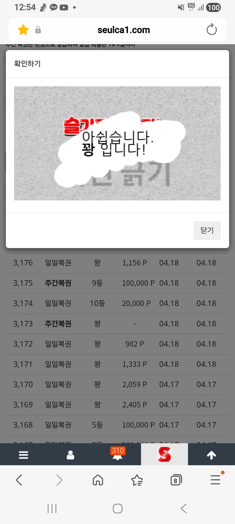 모닝복권 북쟁이리 0 0 0 03:09:56 *기프티콘 바코드 노출 주의* <- 꽝. 0 0 https://seulca1.com/bbs/board.php?bo_table=free&wr_id=3808319 Author 4 3 Lv.15 북쟁이리 15 31,387,634 (6%) 북쟁이리님 보유 포인트 : P 660,340 04.19 출첵 04.19 모닝복권 +1 04.18 [비밀글] 주복 9등 +24 04.18 로얄슈천 1058배 +7 04.18 역시나 스포. 또 한폴낙.ㅠ