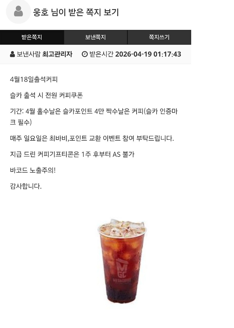 출석커피 웅호 1 0 0 04:16:41 *기프티콘 바코드 노출 주의* <- 출석커피 감사합니다^^ 잘 마실게요 0 0 https://seulca1.com/bbs/board.php?bo_table=free&wr_id=3808355 Author 1 0 Lv.12 웅호 12 17,967,326 (99%) 웅호님 보유 포인트 : P 3,235,662 +1 04.19 출석커피 04.19 출석 04.18 요즘 시안은 돌발이 없네요 +13 04.18 오라메 471배 +22 04.18 오라메 523배