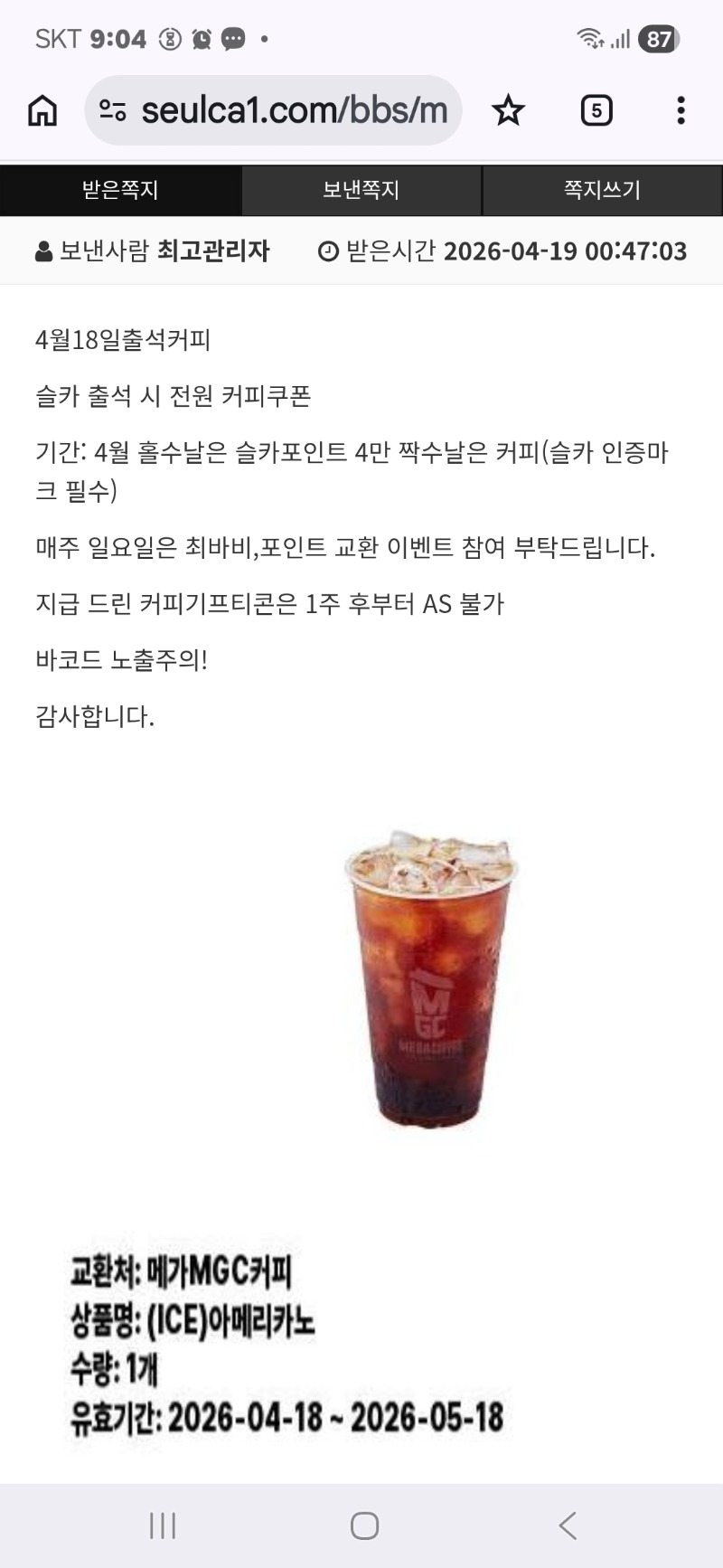 *기프티콘 바코드 노출 주의*
