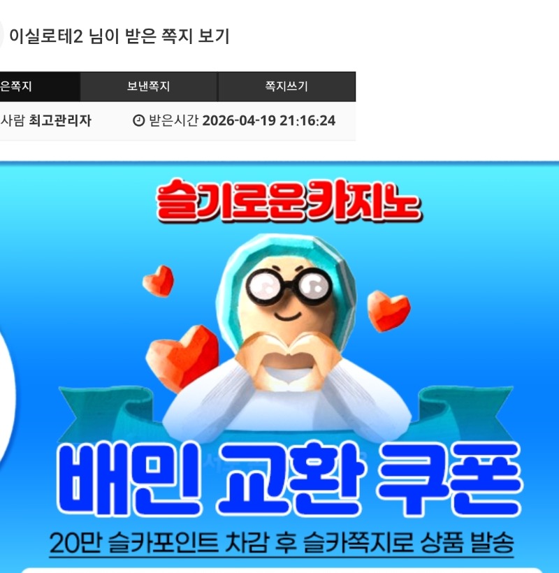최바비 1등 2등 적중~ 이실로테2 8 0 0 04.19 21:41 *기프티콘 바코드 노출 주의* <- 비버.물개 땡큐~~ 0 0 https://seulca1.com/bbs/board.php?bo_table=free&wr_id=3812092 Author 2 2 Lv.13 이실로테2 13 19,258,496 (25%) 이실로테2님 보유 포인트 : P 0 +4 04.21 오늘도 리필중.. +1 04.21 리필이모~ +1 04.20 리필이모~ +2 04.20 포인트 뎅되니 일복 2등.. +8 04.19 최바비 1등 2등 적중~