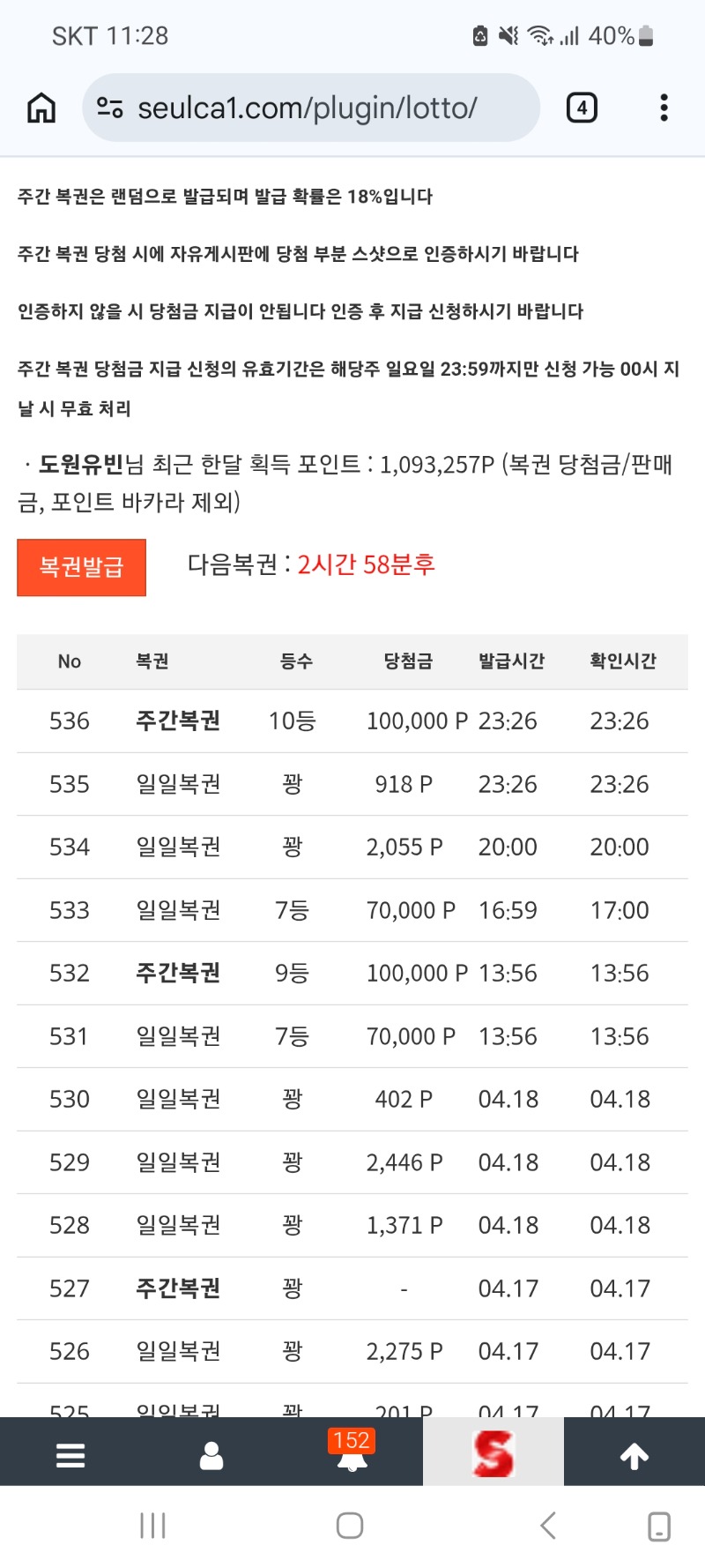 주복10등 도원유빈 6 0 0 04.19 23:29 *기프티콘 바코드 노출 주의* <- 감사합니다 0 0 https://seulca1.com/bbs/board.php?bo_table=free&wr_id=3812560 Author 0 0 Lv.9 도원유빈 9 4,736,232 (18%) 도원유빈님 보유 포인트 : P 55,529 +1 04.20 날씨가 너무 덥네요 +6 04.19 주복10등 +1 04.19 [비밀글] 주복10등 감사합니다 +7 04.19 주복9등 +1 04.19 [비밀글] 주복9등감사합니다