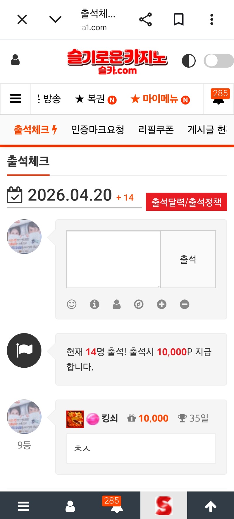 출석~~ 킹쇠 0 0 0 04.20 00:01 *기프티콘 바코드 노출 주의* <- 0 0 https://seulca1.com/bbs/board.php?bo_table=free&wr_id=3812691 Author 3 0 Lv.14 킹쇠 14 23,371,137 (5%) 킹쇠님 보유 포인트 : P 300 04.21 출석~ +1 04.21 일복10등 04.20 출석~~ +1 04.14 출석~~ +13 04.13 카지노 131