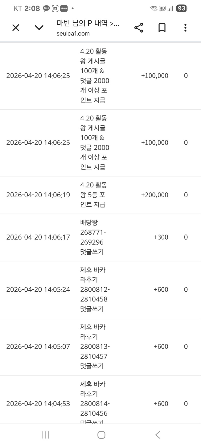 활동왕 5등 감사합니다!!! 마빈 6 0 0 14:10:30 *기프티콘 바코드 노출 주의* <- 0 0 https://seulca1.com/bbs/board.php?bo_table=free&wr_id=3814640 Author 1 1 Lv.15 마빈 15 45,133,684 (75%) 마빈님 보유 포인트 : P 2,280,231 +1 04.20 우루스 치키니 배달 왓어욤^^ +2 04.20 호넷 돌발 참여~ 04.20 우루스 치돌 참여완 +2 04.20 문 포교 입금 들어왓네요~ +2 04.20 맛저하세요 ~~