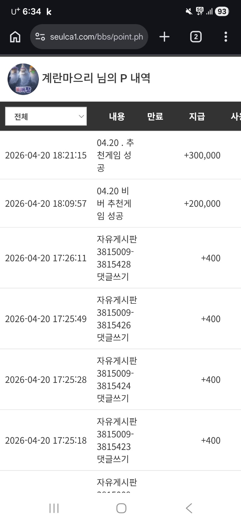 비버오빠 추겜수익 슈우웃~ 계란마으리 4 0 0 18:38:58 *기프티콘 바코드 노출 주의* <- 싸펍 좋아띠!!! 나도 맛나게 먹엇눈뎅.. 낮잠이나 잘겅ㅋㅋㅋㅋㅋㅋㅋㅋ재재재쟈충 뎅~_~ 0 0 https://seulca1.com/bbs/board.php?bo_table=free&wr_id=3815726 Author 12 6 Lv.15 계란마으리 15 38,763,462 (43%) 계란마으리님 보유 포인트 : P 20,435,721 +4 04.20 비버오빠 추겜수익 슈우웃~ +4 04.20 물뎅이 수익 슬포 ! +14 04.20 비버오빠 추겜수익 ㅅ ㅅ +29 04.20 싸펍 9천바리 바닥100배 04.20 도라에몽 가위 낼수있는거 아는 사람
