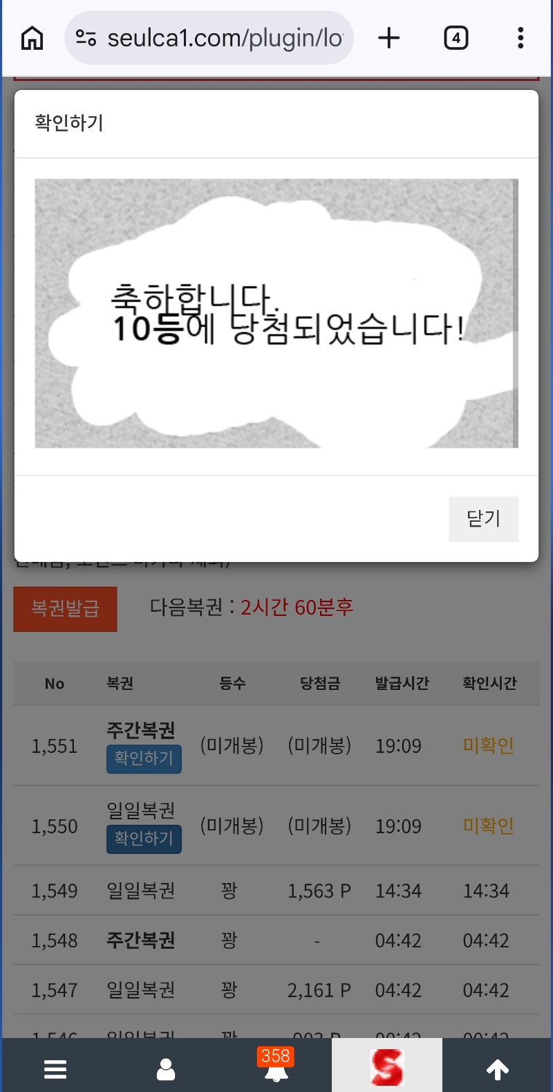 일복10등 당첨 까칠한추니 8 0 0 19:10:36 *기프티콘 바코드 노출 주의* <- 0 0 https://seulca1.com/bbs/board.php?bo_table=free&wr_id=3815830 Author 1 0 Lv.12 까칠한추니 12 14,893,202 (37%) 까칠한추니님 보유 포인트 : P 114,146 +8 04.20 일복10등 당첨 +14 04.20 오도바이 138배 +11 04.20 럭키피쉬 241배 +13 04.20 폼페이 180배 +17 04.20 와일드 웨스트 968배