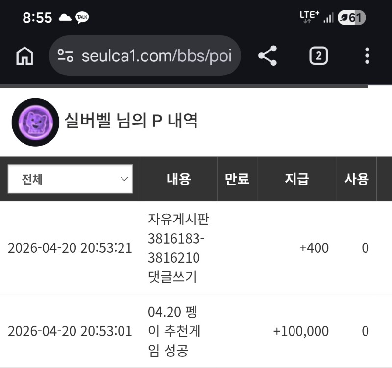 펭아 고마웡~~~~@@ 실버벨 2 0 0 20:56:41 *기프티콘 바코드 노출 주의* <- 잘쓸께~~~~ 0 0 https://seulca1.com/bbs/board.php?bo_table=free&wr_id=3816231 Author 8 6 Lv.19 실버벨 19 175,977,040 (0%) 실버벨님 보유 포인트 : P 2,319,541 04.20 오늘 두번째 주복 등장~~~ +2 04.20 오라메197 +5 04.20 오라메127 +2 04.20 2로도 이기고~~~ +2 04.20 또 네츄럴8