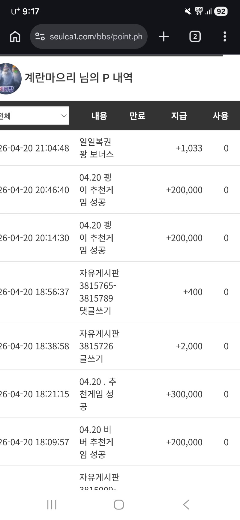 펭이 추겜 슈우우웃! 계란마으리 4 0 0 21:36:00 *기프티콘 바코드 노출 주의* <- 오늘은 왠일로 추겜 3개 한거에서 선물 다받앗당ㅋㅋㅋㅋㅋ 마무리 하나도 선뮬가자아아!!! 맥스 가부루라!!!! 0 0 https://seulca1.com/bbs/board.php?bo_table=free&wr_id=3816423 Author 12 6 Lv.15 계란마으리 15 38,766,562 (43%) 계란마으리님 보유 포인트 : P 20,438,821 +4 04.20 펭이 추겜 슈우우웃! +7 04.20 비버오빠 추겜수익 슈우웃~ +4 04.20 물뎅이 수익 슬포 ! +14 04.20 비버오빠 추겜수익 ㅅ ㅅ +29 04.20 싸펍 9천바리 바닥100배