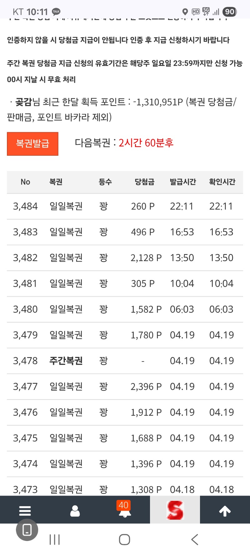 오늘 마지막 복권 꽝 으로 마감 곶감 1 0 0 22:12:08 http://잘가라 + 1 *기프티콘 바코드 노출 주의* <- 0 0 https://seulca1.com/bbs/board.php?bo_table=free&wr_id=3816508 Author 7 3 Lv.18 곶감 18 146,938,156 (78%) 곶감님 보유 포인트 : P 764,022 +1 04.20 오늘 마지막 복권 꽝 으로 마감 +16 04.20 재충 바카라 내추럴 8대6 승 수익 마감 +16 04.20 포교 실패 하고 재충 바카라 내추럴 9대5승 +15 04.20 포교 바카라 내추럴 9대3 패 (포교 실패) +1 04.20 포교 실패하고 재충 해서 수익 마감