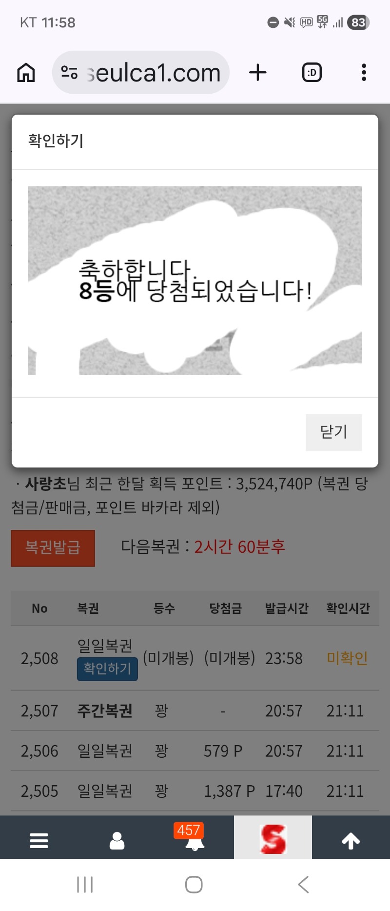 오늘 마지막 일복 8등 감사합니다 사랑초 3 0 0 04.20 23:58 *기프티콘 바코드 노출 주의* <- 0 0 https://seulca1.com/bbs/board.php?bo_table=free&wr_id=3816834 Author 2 1 Lv.13 사랑초 13 22,097,915 (81%) 사랑초님 보유 포인트 : P 207,165 +3 04.21 오라메. 262배 04.21 오라메 262배 +4 04.21 오라메 256배 +5 04.21 오라메. 144배. 바닥한판 +10 04.21 오라메 344배