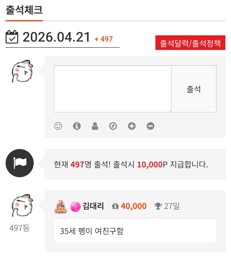 출첵합니다 김대리 1 0 0 06:58:40 *기프티콘 바코드 노출 주의* <- 즐거운 하루 보내세요 ㅎ 0 0 https://seulca1.com/bbs/board.php?bo_table=free&wr_id=3817427 Author 8 4 Lv.16 김대리 16 50,380,643 (1%) 김대리님 보유 포인트 : P 98,416 +1 04.21 출첵합니다 +5 04.20 할천 191배 +8 04.20 멀린 727배 +5 04.20 멀린 434배 +8 04.20 토라메 315배