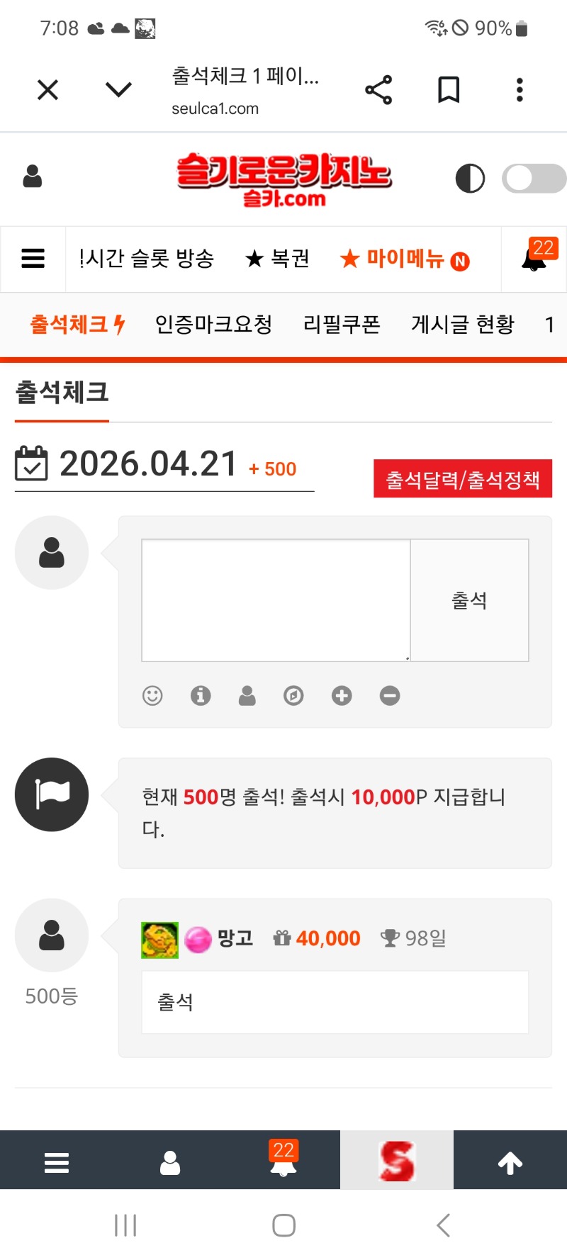 출석합니다 망고 1 0 0 07:08:39 *기프티콘 바코드 노출 주의* <- 0 0 https://seulca1.com/bbs/board.php?bo_table=free&wr_id=3817459 Author 2 0 Lv.12 망고 12 16,773,669 (75%) 망고님 보유 포인트 : P 281,119 +6 04.21 멀린2756배 +14 04.21 오라클300배 +1 04.21 출석합니다 +11 04.20 뱀피651배 +5 04.20 멀린269배