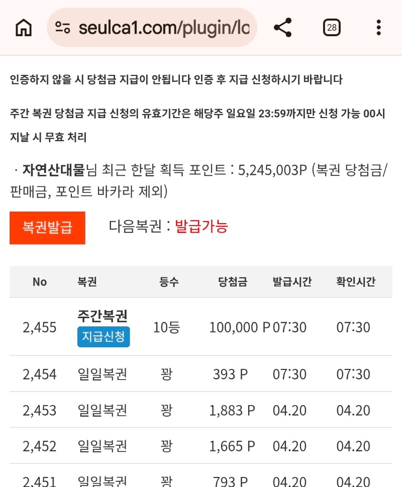 모닝주복10등 자연산대물 7 1 0 10:38:10 *기프티콘 바코드 노출 주의* <- 1 0 https://seulca1.com/bbs/board.php?bo_table=free&wr_id=3817891 Author 4 1 Lv.15 자연산대물 15 41,034,581 (55%) 자연산대물님 보유 포인트 : P 6,293 +7 04.21 모닝주복10등 +9 04.21 주복당촘.. 등수는 미확인 +12 04.21 5대3 또처맞고 +12 04.21 9대2 처맞고 04.20 진짜크다.. 덩어리 ㅋ