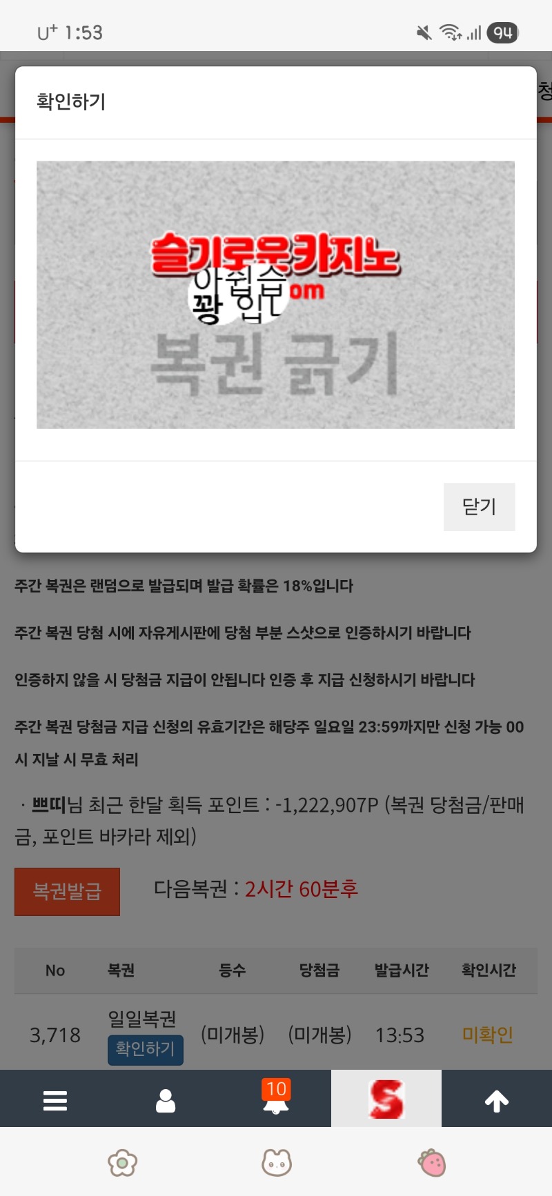 점심 복권 꽝 쁘띠 1 0 0 13:53:45 *기프티콘 바코드 노출 주의* <- 0 0 https://seulca1.com/bbs/board.php?bo_table=free&wr_id=3818431 Author 17 4 Lv.17 쁘띠 17 81,329,487 (37%) 쁘띠님 보유 포인트 : P 2,013,458 +2 04.21 지금 슬포가~~!!!!! +1 04.21 점심 복권 꽝 +2 04.21 출첵 커피 ~~ +4 04.21 아침 복권 꽝 +2 04.21 첫복권 꽝
