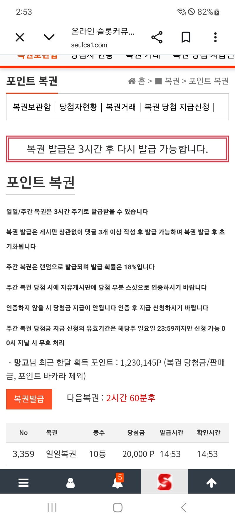 일복10등 망고 8 1 0 14:53:53 *기프티콘 바코드 노출 주의* <- 나도1등좀. 주세요 1 0 https://seulca1.com/bbs/board.php?bo_table=free&wr_id=3818552 Author 2 0 Lv.12 망고 12 16,790,219 (75%) 망고님 보유 포인트 : P 233,393 +2 04.21 비버추겜. 슬포 +8 04.21 일복10등 +10 04.21 닭집156배 +13 04.21 슈슈211배 +18 04.21 뱀피667배