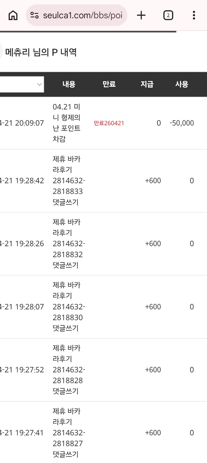 미형포인트챠감~~화이띵 메츄리 0 0 0 20:24:54 *기프티콘 바코드 노출 주의* <- 0 0 https://seulca1.com/bbs/board.php?bo_table=free&wr_id=3819805 Author 1 0 Lv.7 메츄리 7 2,923,384 (92%) 메츄리님 보유 포인트 : P 1,010,864 04.21 미형 수고하셨어용 모두 굿밤되세용 ㅎㅎ 04.21 미형포인트챠감~~화이띵 +4 04.21 맨날주거 따질못해ㅋㅋㅋㅋ맛저하세용~~ +11 04.21 복권10등 감사함니당 +8 04.21 첫가입충전하고 슬롯300프로만 채우면