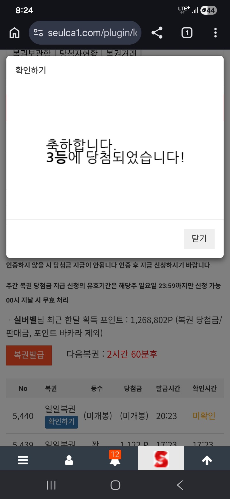 일복 3등 나이샤~~~ 실버벨 8 0 0 20:25:01 *기프티콘 바코드 노출 주의* <- 0 0 https://seulca1.com/bbs/board.php?bo_table=free&wr_id=3819807 Author 8 6 Lv.19 실버벨 19 176,743,600 (0%) 실버벨님 보유 포인트 : P 4,031,369 +1 04.21 오늘하루도 수고 많으셨습니다 ~~ +7 04.21 3패네 잠이나 자야긋다~~~ +7 04.21 또 져버렸슈...ㅠ +5 04.21 에구 저버렸네ㅠ 04.21 물개 축하해~~~