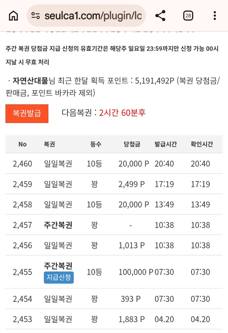 10.10.10 자연산대물 4 0 0 20:41:15 *기프티콘 바코드 노출 주의* <- 0 0 https://seulca1.com/bbs/board.php?bo_table=free&wr_id=3819861 Author 4 1 Lv.15 자연산대물 15 41,042,980 (55%) 자연산대물님 보유 포인트 : P 54,692 +4 04.21 10.10.10 +8 04.21 모닝주복10등 +10 04.21 주복당촘.. 등수는 미확인 +14 04.21 5대3 또처맞고 +14 04.21 9대2 처맞고