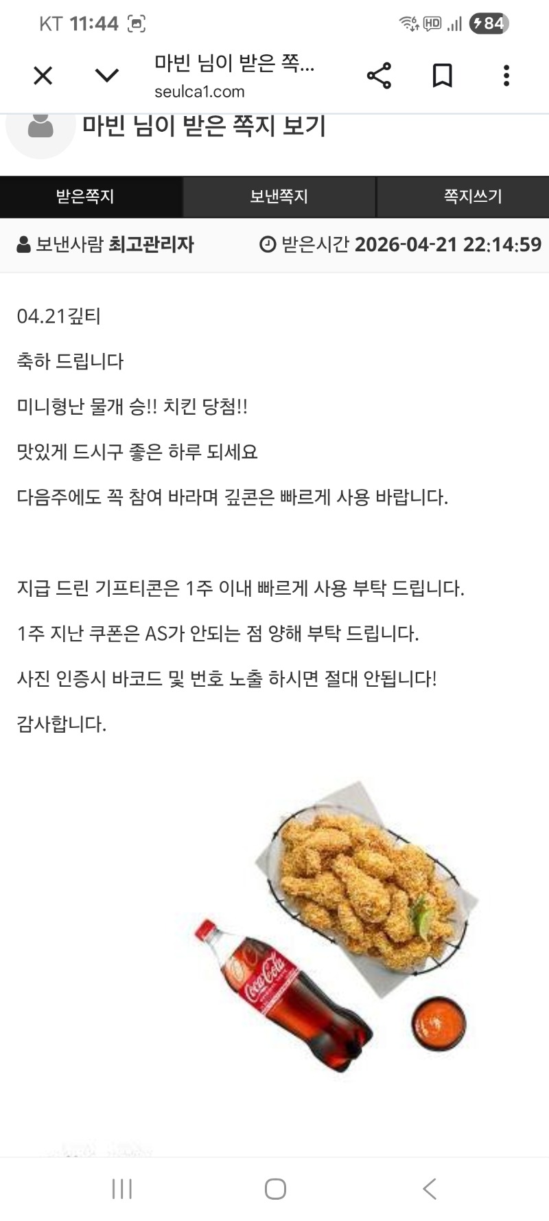 형난 치킨 당첨 감사합니다 ^^ 마빈 1 0 0 04.21 23:44 *기프티콘 바코드 노출 주의* <- 0 0 https://seulca1.com/bbs/board.php?bo_table=free&wr_id=3820361 Author 1 1 Lv.15 마빈 15 45,734,698 (78%) 마빈님 보유 포인트 : P 3,196,992 +1 04.22 모노폴리 다시 한판먹기 5롤 진입~~ +1 04.22 5롤 한판 빠르게 먹고 득보고 휴식 +3 04.22 모노폴리 5롤진입 한판먹기 +17 04.22 위치하트 273 +15 04.22 위치하트 303