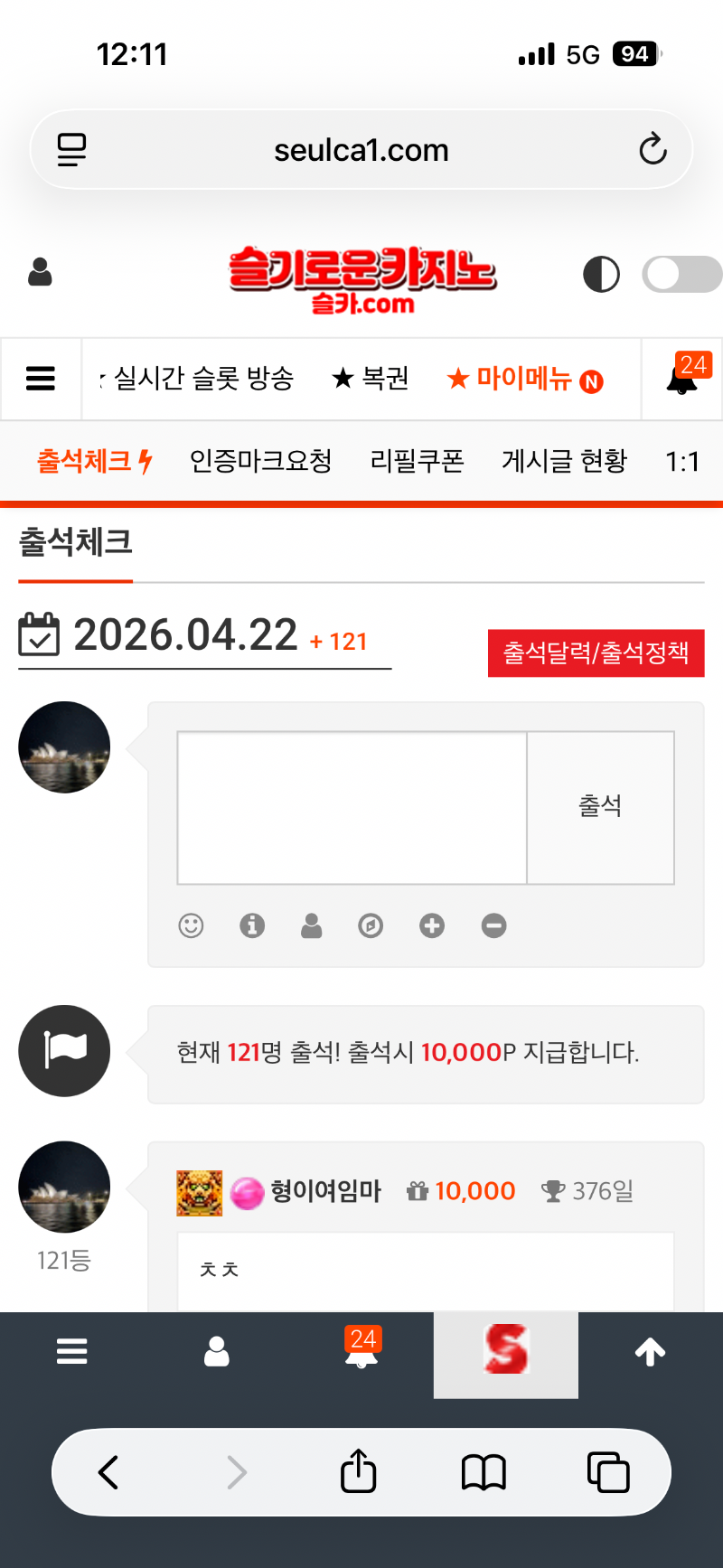 출석 형이여임마 0 0 0 00:11:41 *기프티콘 바코드 노출 주의* <- 0 0 https://seulca1.com/bbs/board.php?bo_table=free&wr_id=3820464 Author 2 0 Lv.15 형이여임마 15 31,252,043 (6%) 형이여임마님 보유 포인트 : P 4,176,074 04.22 출석 +3 04.21 개리그 무 배팅 +1 04.21 맛저하세요~~ +32 04.21 좀스 3406배 04.21 맛점하세요~~