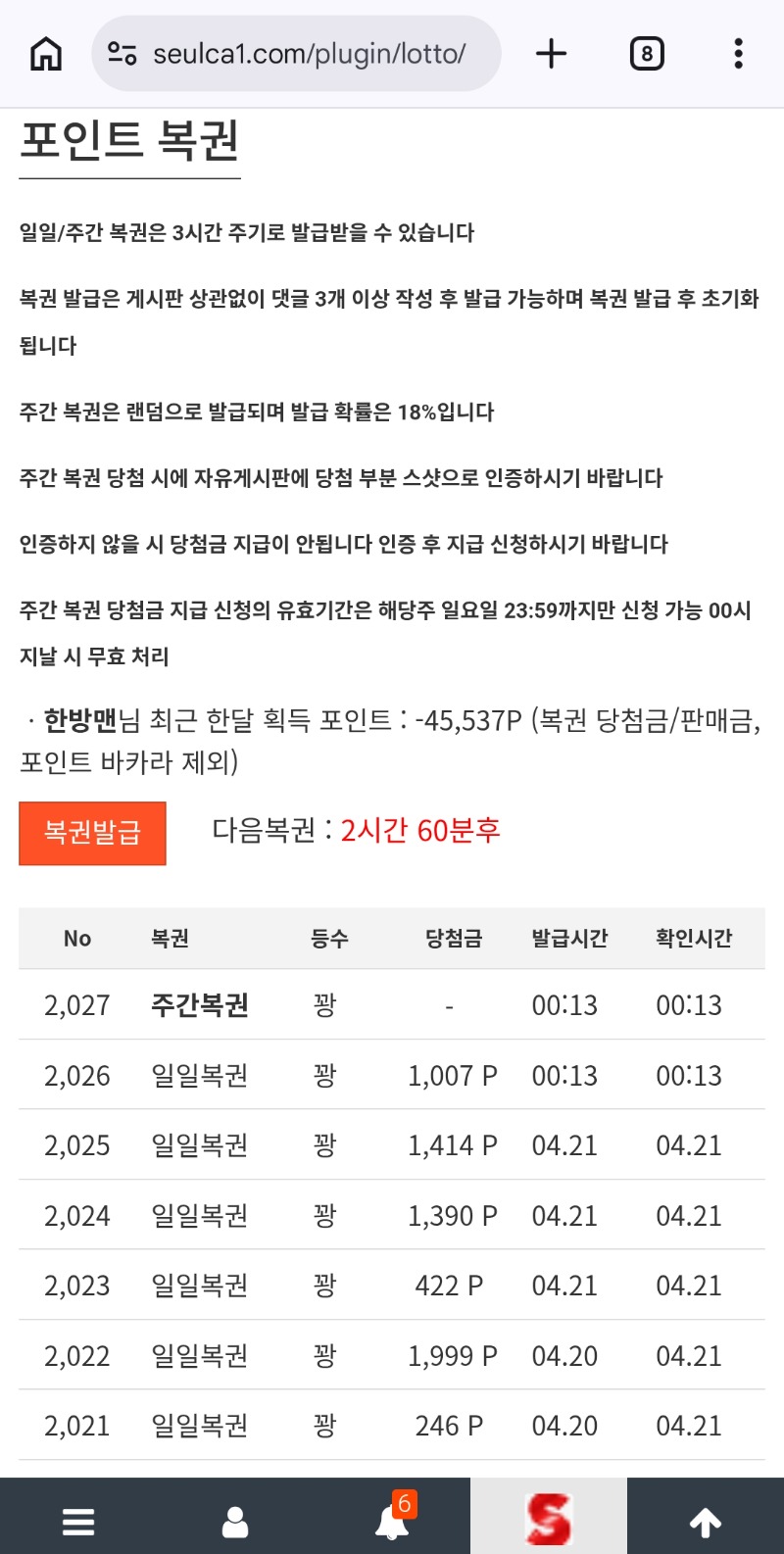 주복 잠깐 설레엿네 ㅎㅎ 한방맨 2 0 0 00:14:48 *기프티콘 바코드 노출 주의* <- 0 0 https://seulca1.com/bbs/board.php?bo_table=free&wr_id=3820475 Author 2 0 Lv.13 한방맨 13 20,329,736 (46%) 한방맨님 보유 포인트 : P 18,014 04.22 출첵 +2 04.22 주복 잠깐 설레엿네 ㅎㅎ 04.21 어렵다 어려워~~ +1 04.21 요즘 찍는귀신이 사라졋네 ㅋ +2 04.21 할일은 많고 바빠다 바뻐