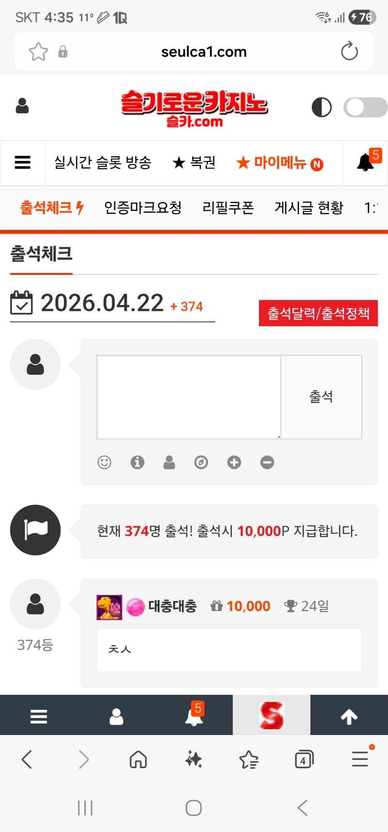 출석합니다 대충대충 0 0 0 04:36:25 *기프티콘 바코드 노출 주의* <- 이벤트 고~~~ 0 0 https://seulca1.com/bbs/board.php?bo_table=free&wr_id=3820835 Author 1 0 Lv.10 대충대충 10 9,775,056 (88%) 대충대충님 보유 포인트 : P 4,173,204 04.22 출석합니다 04.21 출석~ +7 04.20 할배 150 +8 04.20 할배 127 +6 04.20 할배 320