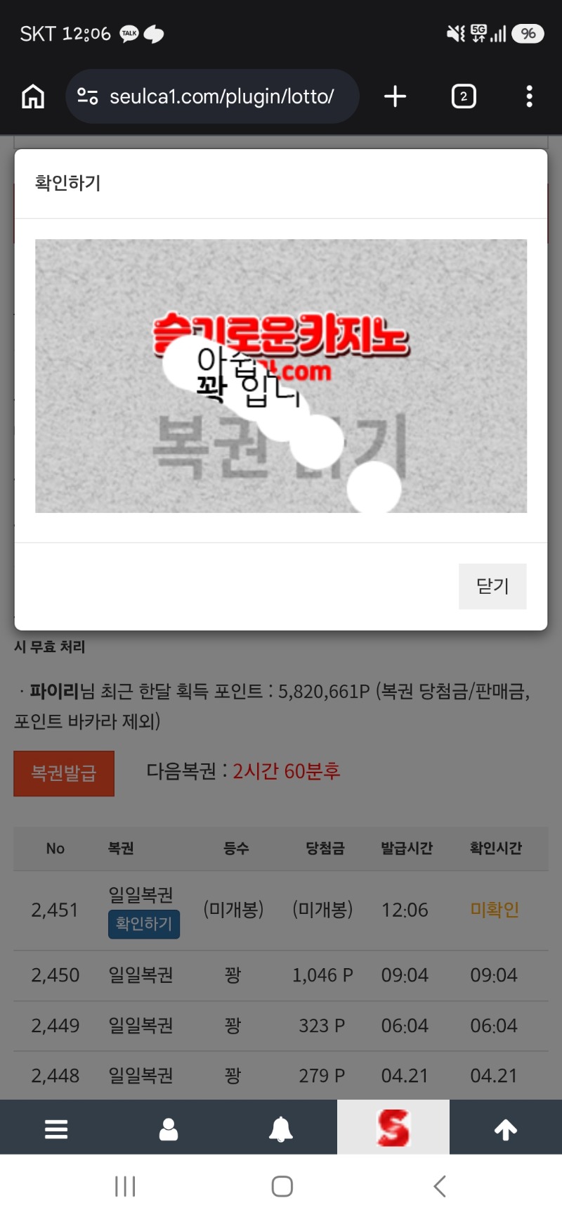 또꽝 ㅡ.ㅠ. 파이리 2 0 0 12:07:19 *기프티콘 바코드 노출 주의* <- 0 0 https://seulca1.com/bbs/board.php?bo_table=free&wr_id=3821591 Author 3 1 Lv.13 파이리 13 20,510,082 (50%) 파이리님 보유 포인트 : P 800 +2 04.22 또꽝 ㅡ.ㅠ. +4 04.22 나도 우루스 보너스 받고싶다!!!!! +2 04.22 이모~ +4 04.22 복권꽝 ㅠ 04.21 다음주 미니형난 대결은 펭돈 까스입니다!!