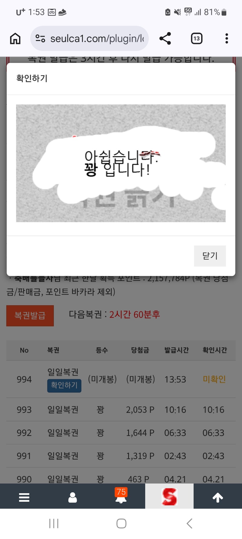 점심복권 기대1도 안했다 축배를들자 1 0 0 13:54:33 *기프티콘 바코드 노출 주의* <- ㅠㅠ아쉽네요 0 0 https://seulca1.com/bbs/board.php?bo_table=free&wr_id=3821866 Author 3 0 Lv.13 축배를들자 13 20,912,220 (58%) 축배를들자님 보유 포인트 : P 1,750,868 +1 04.22 점심복권 기대1도 안했다 +1 04.22 맛점하세요 +7 04.22 뱀피 리플 오류로 인해서 04.22 맛점하세요 +20 04.22 멀린 리플고장이라서