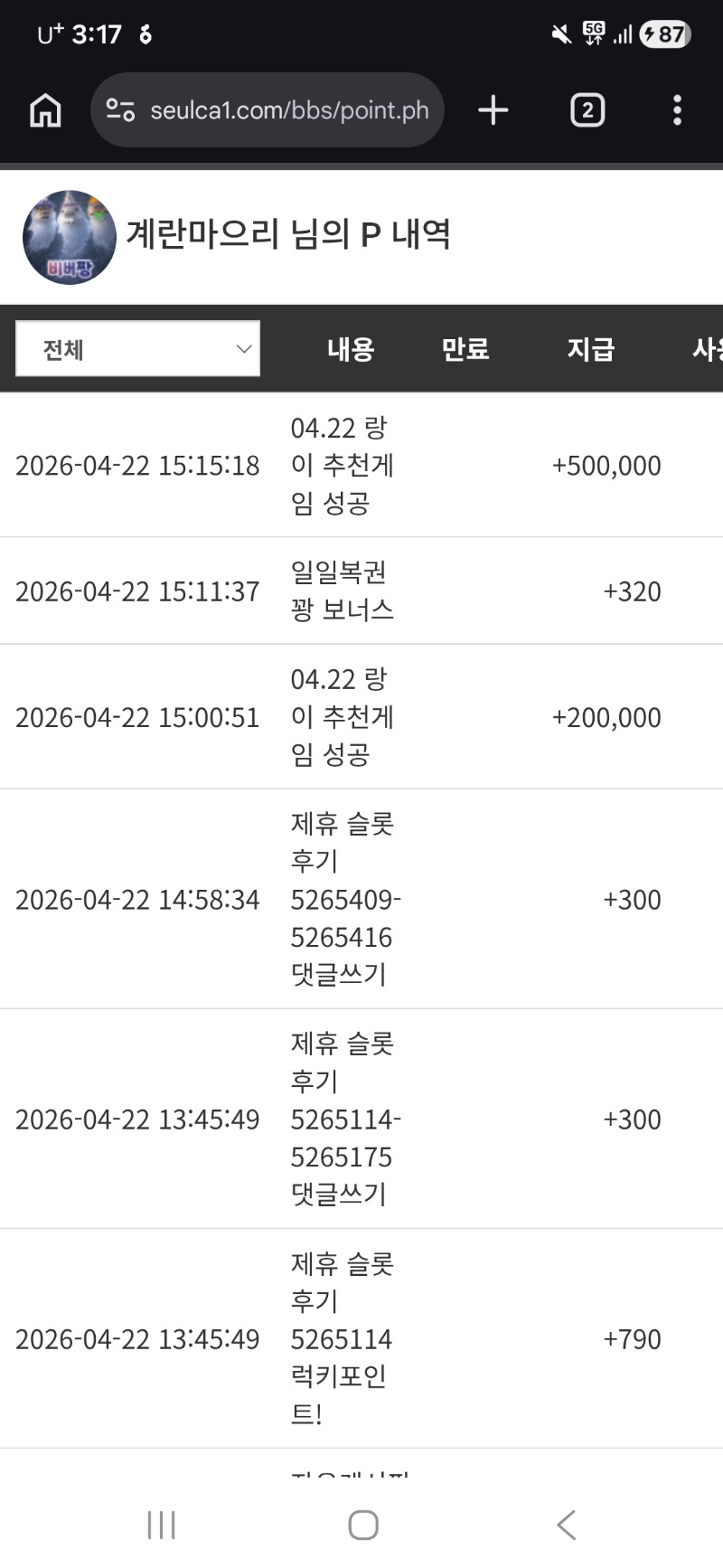 랑오빠 추겜수익 썃!!!!! 계란마으리 22 0 0 15:18:12 *기프티콘 바코드 노출 주의* <- 슈슈 나이추츄츄 슬포도 나이츄츄츄 이버번주 500만포 써야돠서 부지런히 긁어 모아야함당!!!! 0 0 https://seulca1.com/bbs/board.php?bo_table=free&wr_id=3822169 Author 12 6 Lv.15 계란마으리 15 38,913,669 (44%) 계란마으리님 보유 포인트 : P 22,734,271 +22 04.22 랑오빠 추겜수익 썃!!!!! +16 04.22 달오빠 짱!!€€ 04.22 김치찌개 맛집 04.22 차장님 성이 .. 04.22 소름 돋앗어..