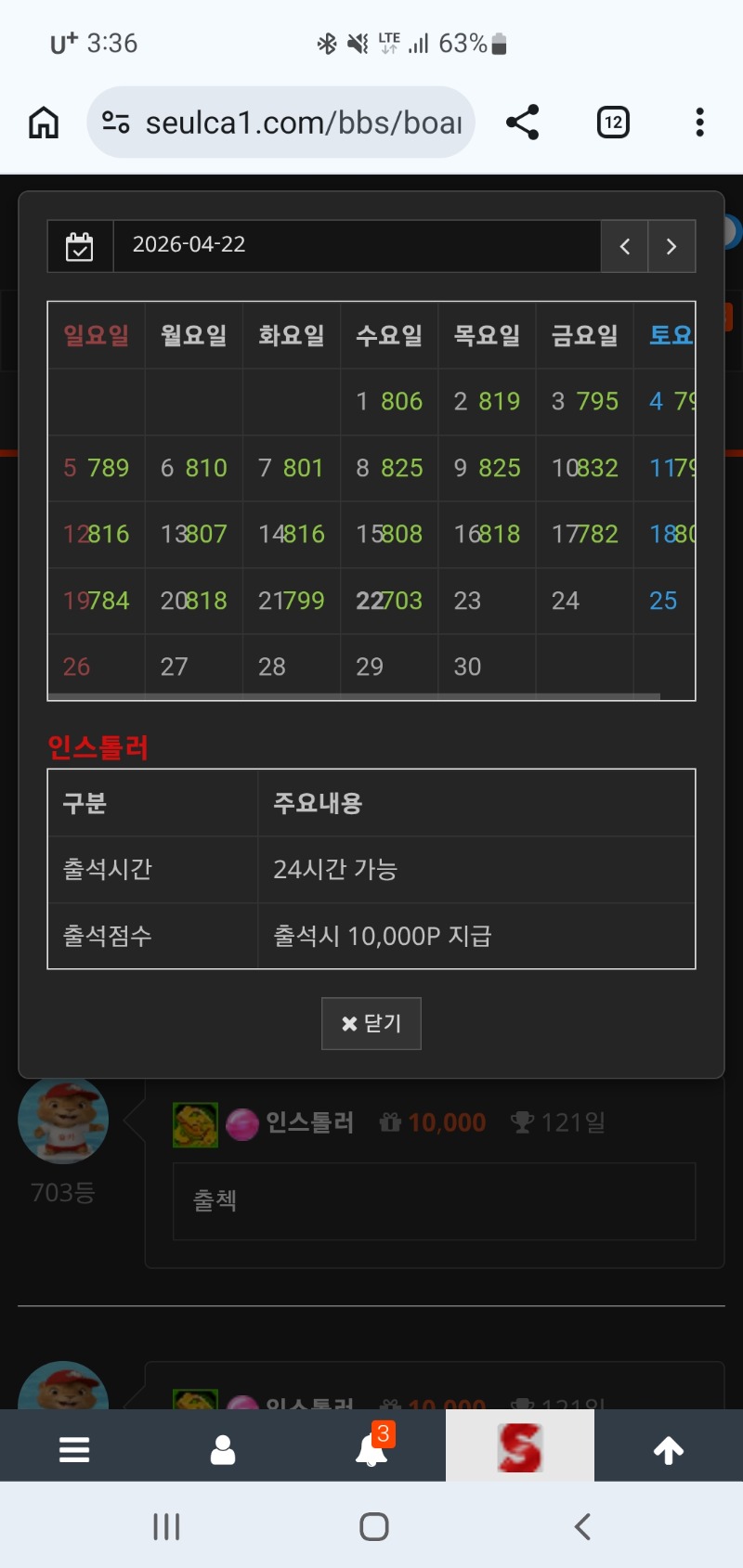 늦은출첵 인스톨러 0 0 0 15:37:08 *기프티콘 바코드 노출 주의* <- 다들출첵하세요 출첵떠블체크 만근갓짜 0 0 https://seulca1.com/bbs/board.php?bo_table=free&wr_id=3822243 Author 1 0 Lv.12 인스톨러 12 14,109,988 (22%) 인스톨러님 보유 포인트 : P 147,868 +2 04.22 오랜만에쌍복 04.22 늦은출첵 +1 04.21 이모리필이요 +29 04.20 얌얌이 935배 +15 04.20 포오기 115배