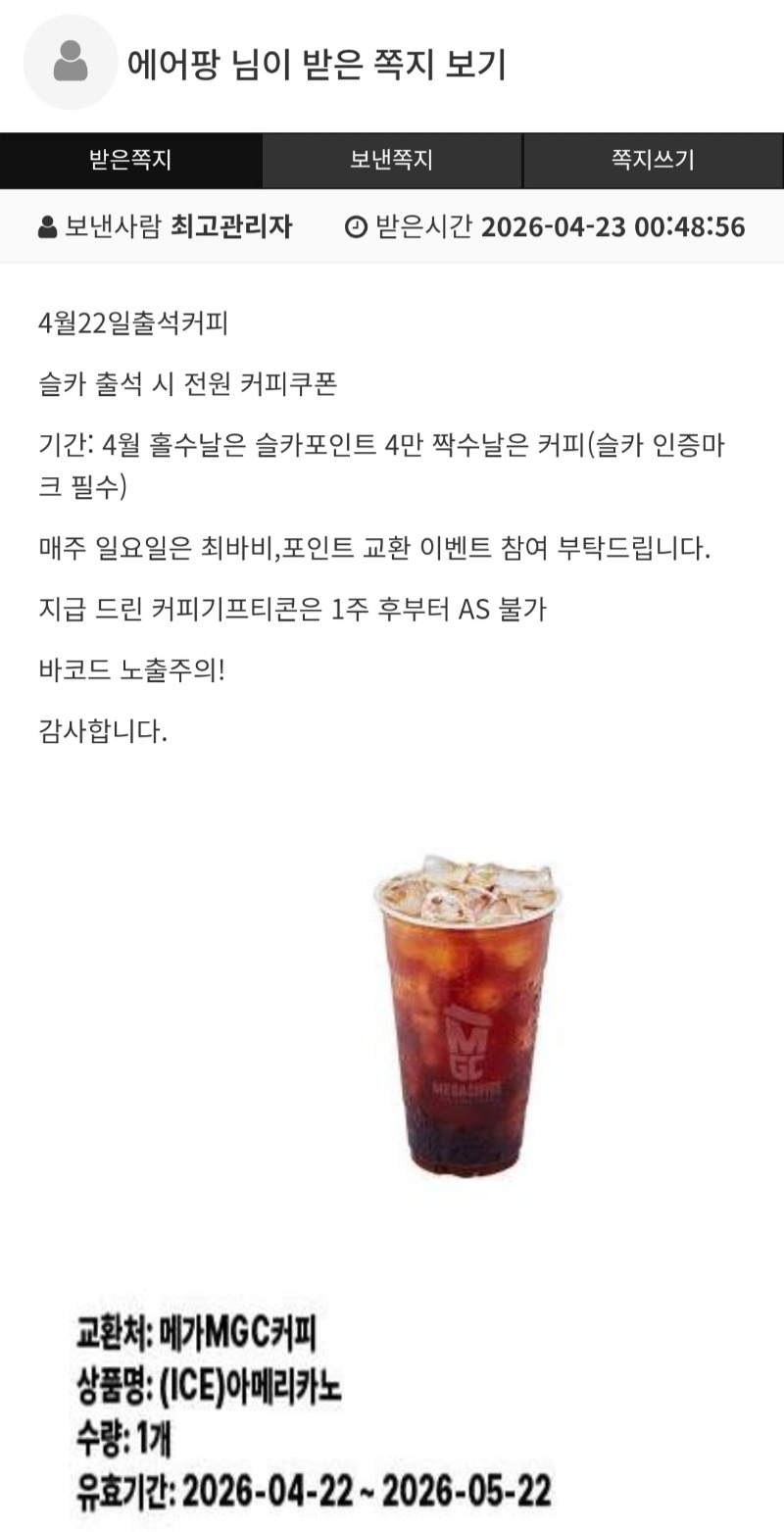 출석 커피 에어팡 2 1 0 10:45:08 *기프티콘 바코드 노출 주의* <- 감사합니다~~ㅎㅎ 1 0 https://seulca1.com/bbs/board.php?bo_table=free&wr_id=3824838 Author 4 4 Lv.14 에어팡 14 25,110,421 (30%) 에어팡님 보유 포인트 : P 916,803 +2 04.23 출석 커피 +3 04.23 출석해요 +21 04.22 롤링 2747배 +1 04.22 맛저하세요 +41 04.22 스보다천 3064배