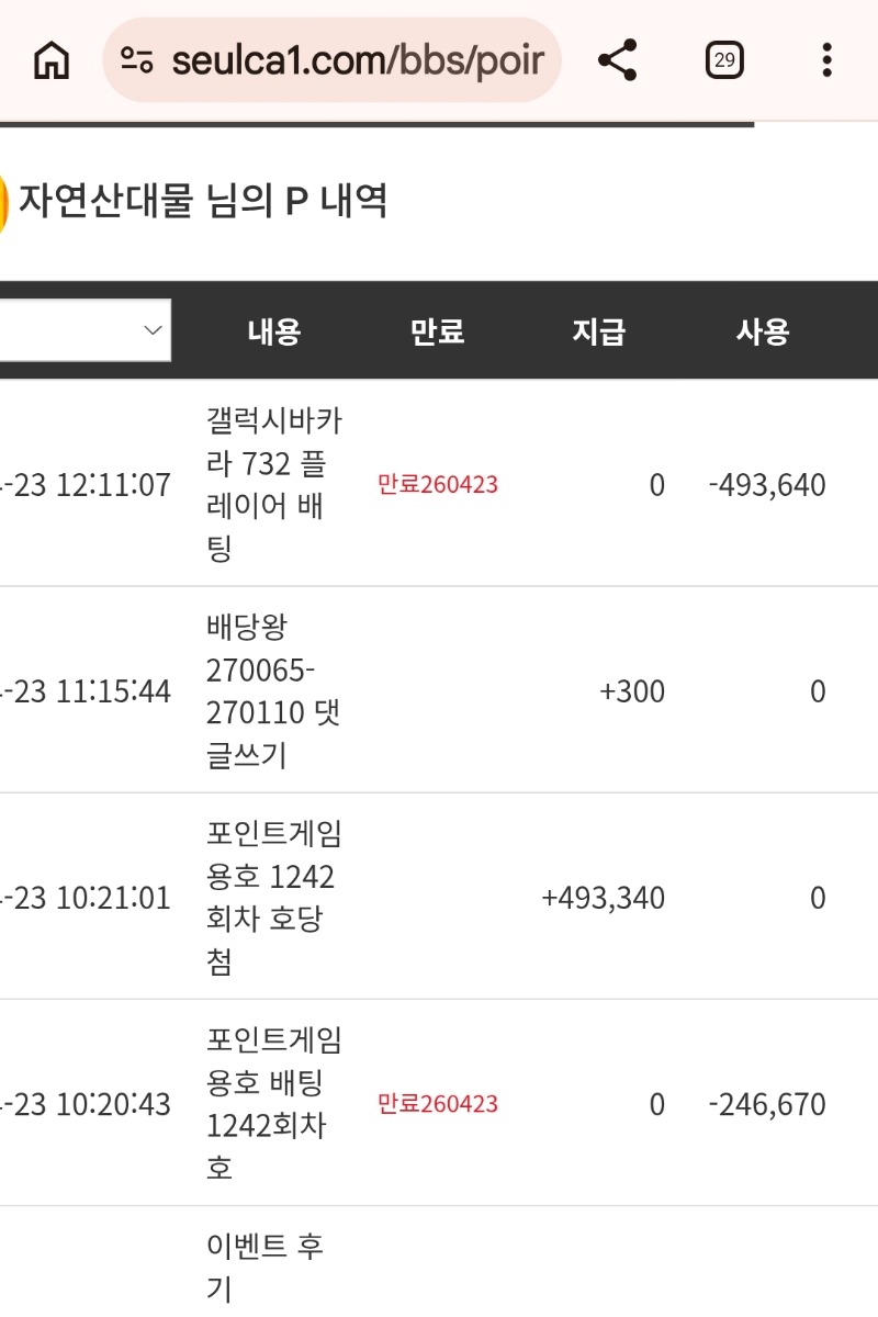 2깡실패.. 슬포뎅 자연산대물 2 1 0 12:49:30 *기프티콘 바코드 노출 주의* <- 이번주도 포교는 나가리 1 0 https://seulca1.com/bbs/board.php?bo_table=free&wr_id=3825269 Author 4 1 Lv.15 자연산대물 15 41,127,877 (55%) 자연산대물님 보유 포인트 : P 2,300 +2 04.23 2깡실패.. 슬포뎅 +37 04.22 8대2 승 +16 04.22 오라메 148배 리플X +5 04.21 10.10.10 +10 04.21 모닝주복10등