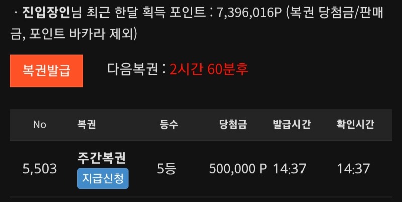 오랜만에 주복 5등 인증 진입장인 7 0 0 14:38:58 *기프티콘 바코드 노출 주의* <- 주복 5등 나이샷 나쁘지 않네요 0 0 https://seulca1.com/bbs/board.php?bo_table=free&wr_id=3825463 Author 14 7 Lv.18 진입장인 18 100,368,151 (0%) 진입장인님 보유 포인트 : P 2,000,000 04.23 다들 잊지말고 +7 04.23 오랜만에 주복 5등 인증 +1 04.23 굿모닝입니다 +1 04.23 출석하시고 +1 04.22 습관이 무서운게