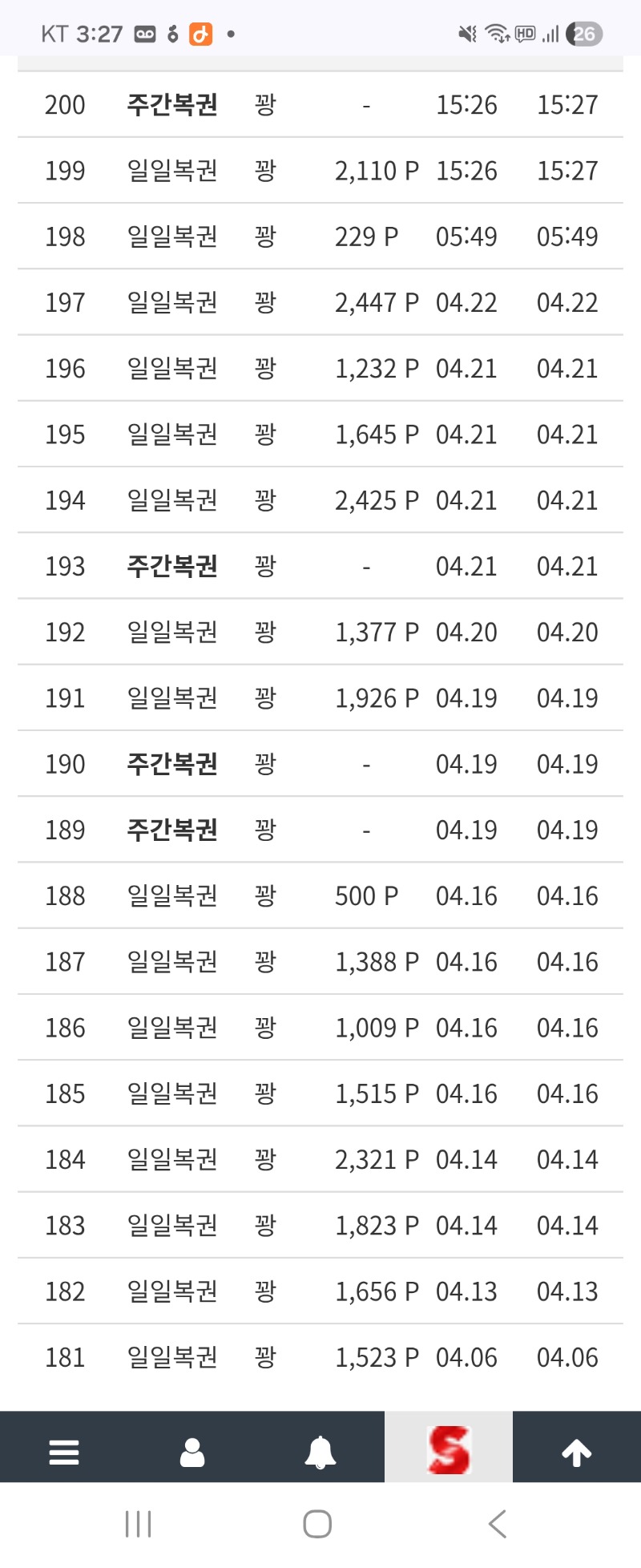 와 복권.. 석이22 0 0 0 15:28:39 *기프티콘 바코드 노출 주의* <- 뜨는 족족 사는데도 꽝만나오네..ㅎㅎㅎㅎㅎㅎ 0 0 https://seulca1.com/bbs/board.php?bo_table=free&wr_id=3825572 Author 0 0 Lv.7 석이22 7 2,405,594 (40%) 석이22님 보유 포인트 : P 427,389 04.23 와 복권.. +5 04.21 피자당첨!! +2 04.20 루징금액 +7 04.16 시안출금 +1 04.10 [비밀글] 50만포교환