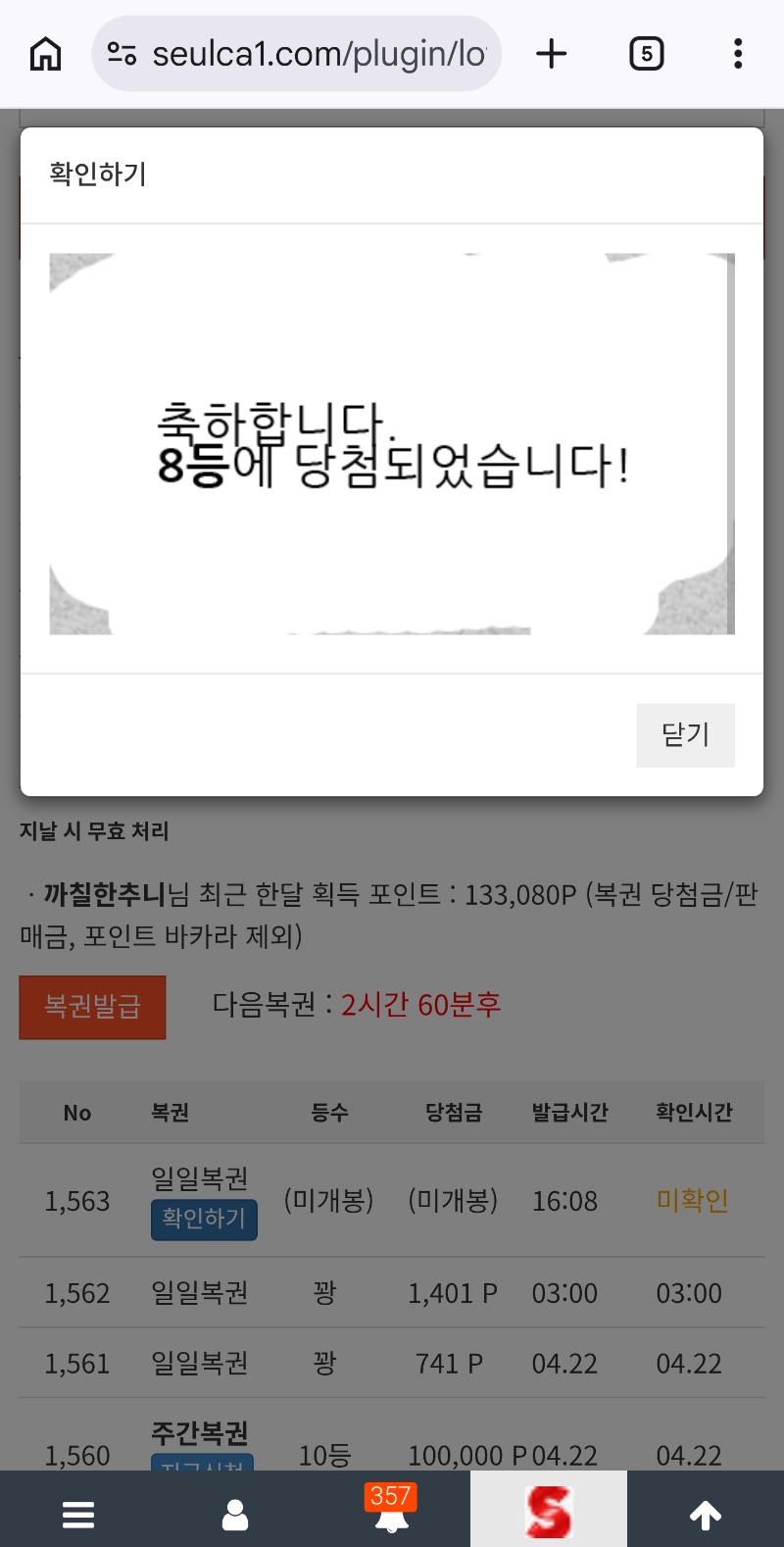 일복8등당첨 까칠한추니 7 0 0 16:10:15 *기프티콘 바코드 노출 주의* <- 0 0 https://seulca1.com/bbs/board.php?bo_table=free&wr_id=3825667 Author 1 0 Lv.12 까칠한추니 12 15,046,531 (40%) 까칠한추니님 보유 포인트 : P 329,248 +7 04.23 일복8등당첨 +1 04.23 출석요 +8 04.22 주복10등 당첨 +2 04.22 맛점하세요 +2 04.22 굿모닝