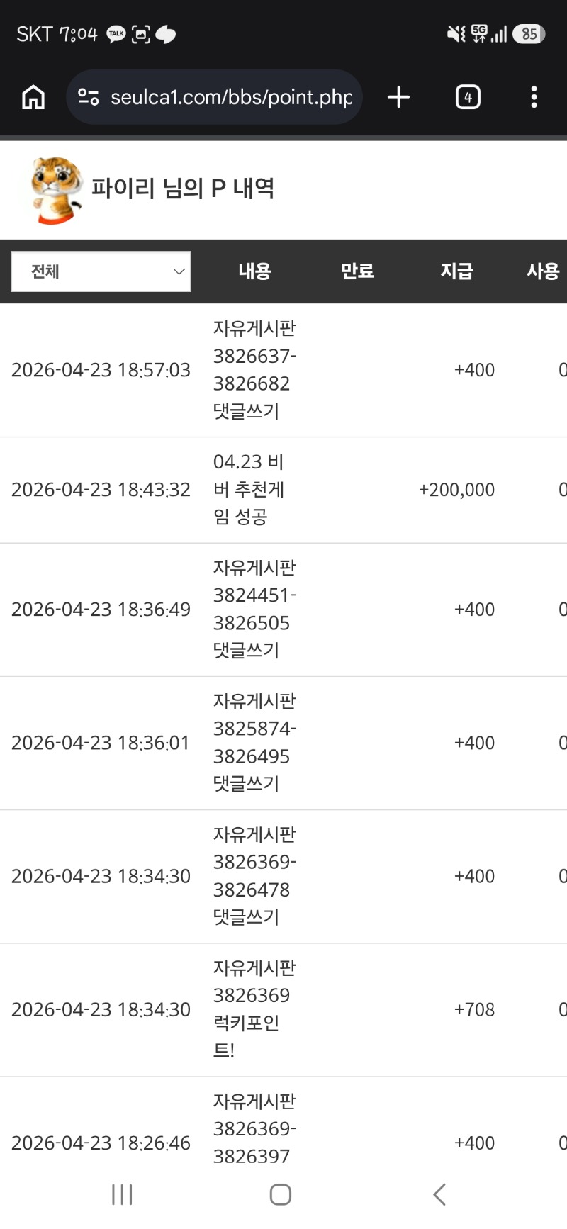 비벼 추겜성공포+비제쿱까지 ㅅㅅ 파이리 3 0 0 19:05:25 *기프티콘 바코드 노출 주의* <- 오늘 추겜 개시하고 포인트와 ~~ 비벼의 추겜성공 비제쿱까지겟!! 0 0 https://seulca1.com/bbs/board.php?bo_table=free&wr_id=3826755 Author 3 1 Lv.13 파이리 13 20,604,756 (52%) 파이리님 보유 포인트 : P 109,265 +4 04.23 비제쿱 바꾸고싶은데..포인트가없... +6 04.23 이번주 쌍복이..왜케많이오노 ㅋㅋㅋ +3 04.23 비벼 추겜성공포+비제쿱까지 ㅅㅅ +6 04.23 점심복권 꽝 ㅠ +8 04.23 쌍복이왔지만 팝니다